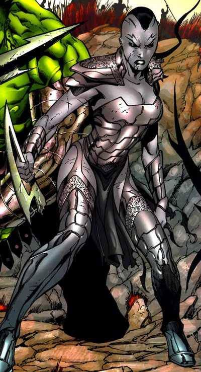 Caiera is an amazingly powerful woman, with immense physical strength, speed, and stamina. She’s an alien from the Sakaar, belonging to the Oldstrong race, and is the loyal bodyguard of the Red-King (who is a crazed despot, but we’re not really talking about him). It’s just a shame that the thing Caiera is most remembered for is marrying the Hulk.